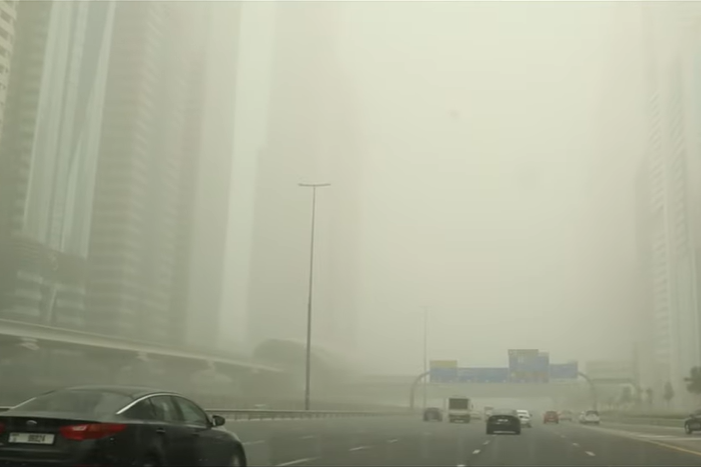 দুবাইয়ের আকাশে ধুলোর ঘন আবরণ ও বালি ঝড়ের কারণে আমিরাত জুড়ে দৃশ্যমানতা কমে গেছে।