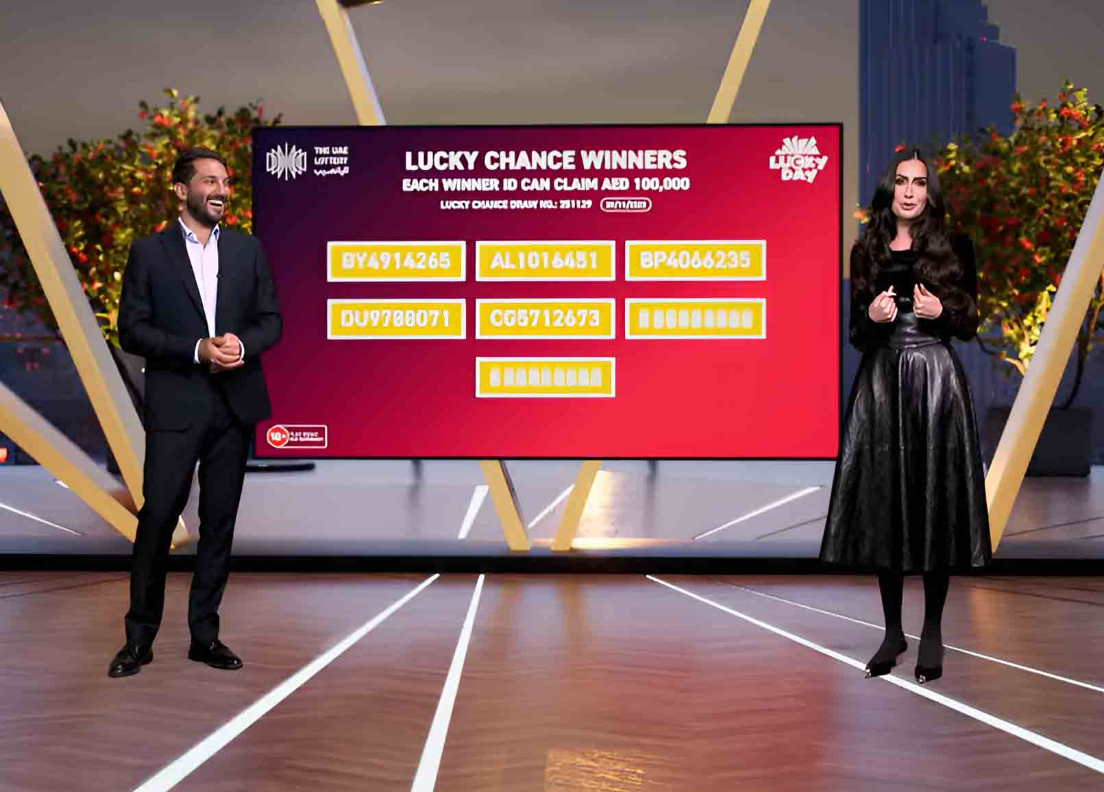 সাতজন ভাগ্যবান সংযুক্ত আরব আমিরাতের বাসিন্দাকে ১ লক্ষ দিরহাম নগদ পুরস্কারের নিশ্চয়তা দেয় এমন লাকি চান্স আইডিগুলি নিম্নলিখিত সংখ্যাগুলির মধ্যে ছিল: BY4914265, AL10116451, BP4066235, DU9788071, CG5712673, DB7877266 এবং AH0600495
